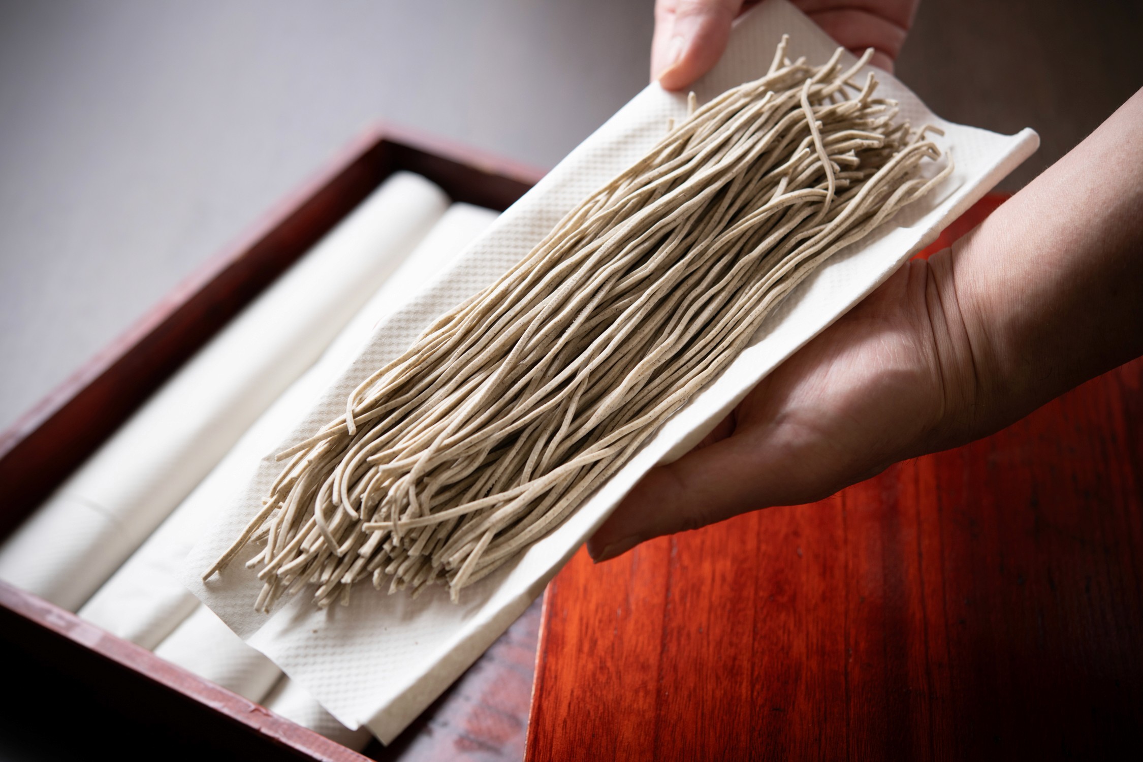挽きたて・打ちたて・茹でたての『三たて』にこだわった十割蕎麦。つなぎを一切使わず、蕎麦本来の風味と喉越しをお楽しみいただけます。